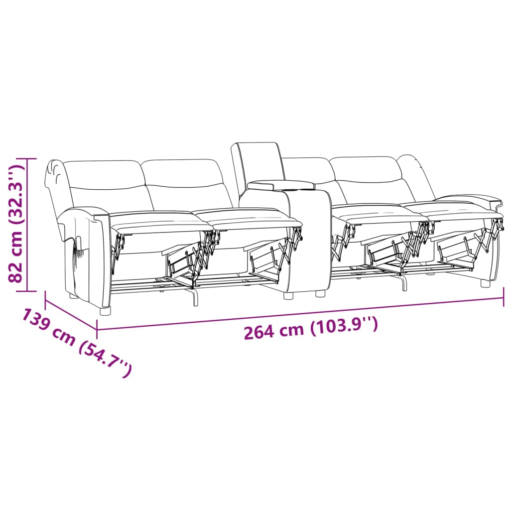 Dieses 4-Sitzer-Massagesofa bietet eine ausgezeichnete Sitzgelegenheit in Ihrem Wohnzimmer. Das Massagesofa besteht aus strapazierfähigem Mikrofasergewebe und einem Metallrahmen, der mit Schaumstoff gefüllt ist, was es stabil macht und eine angenehmen Sitzposition gewährleistet. Dieser elektrische Massagesessel verfügt über 6 Massagepunkte für Rücken, Sitz und Beine. Über die mitgelieferte Fernbedienung können Sie verschiedene Massageprogramme auswählen. Der Sitz kann für zusätzliche Entspannung auf Knopfdruck erwärmt werden. Die Rückenlehne lässt sich nach hinten verstellen und die Fußstütze nach oben bringen, um eine bequeme Liegeposition zu ermöglichen. Dieses Massagesofa ist auch mit einer Seitentasche für die Fernbedienung versehen. Darüber hinaus können Sie Kaffeebecher oder Saftflaschen in den Getränkehaltern griffbereit halten. Erleben Sie eine angenehme, entspannte Zeit auf diesem 4-Sitzer-Massagesofa!